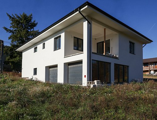 Výhodou je, že všetky zásadné a nákladné práce už sú zrealizované – exteriér domu je kompletne hotový, elektroinštalácie sú pripravené a použité okná sú vo vysokej kvalite, čo výrazne šetrí energetické náklady.
